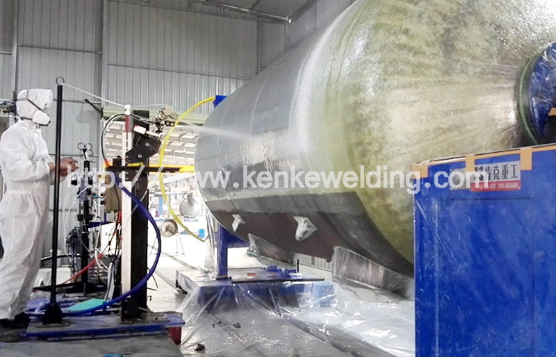 The oil tank painting machine consists of three parts: Head and Tail Stock Positioner, Spray Trolley, and Fiber Resin Spray Painting Machine. This oil tank painting machine is used to coat the fiber resin on the surface on the oil tank.